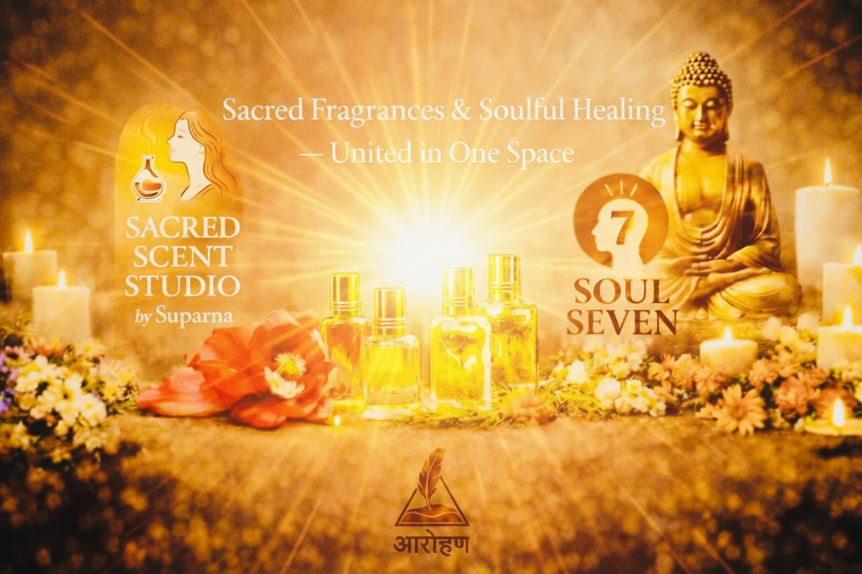 Sacred Scent Studio is a space devoted to intentional creation — where fragrance, ritual, and inner work meet. Born from a deep respect for slowness, sensitivity, and emotional truth, it is the mother space for two expressions: Aarohan and Soul Seven.